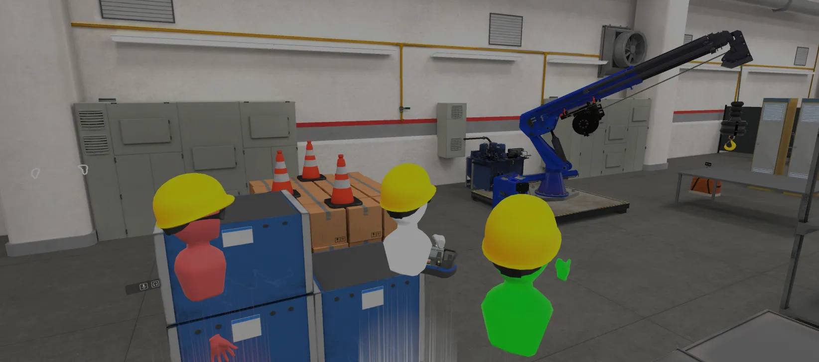 Using VR controllers to simulate interactions with digital twins such as tools, PPE's and machinery.